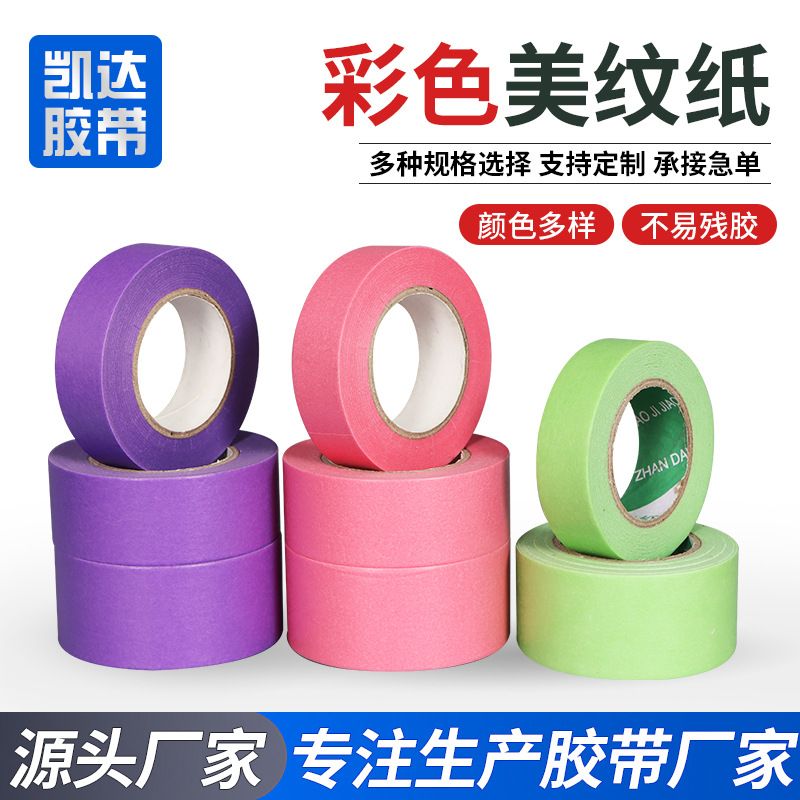 彩色美纹纸胶带汽车家具喷漆遮蔽易撕弱粘和纸胶带装修分色胶带纸