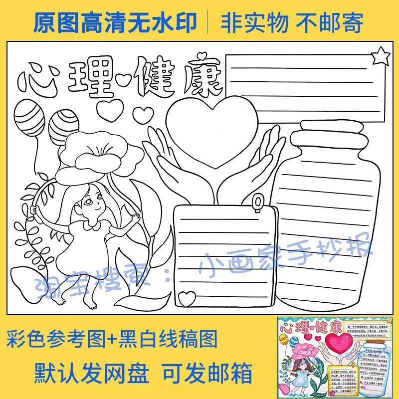 心理健康手抄报模板中小学生阳光自信快乐成长电子版半成品小报a4