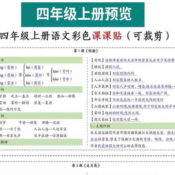 小学语文一二三四五六年级课课贴多音字近反义词语解释打印自粘贴