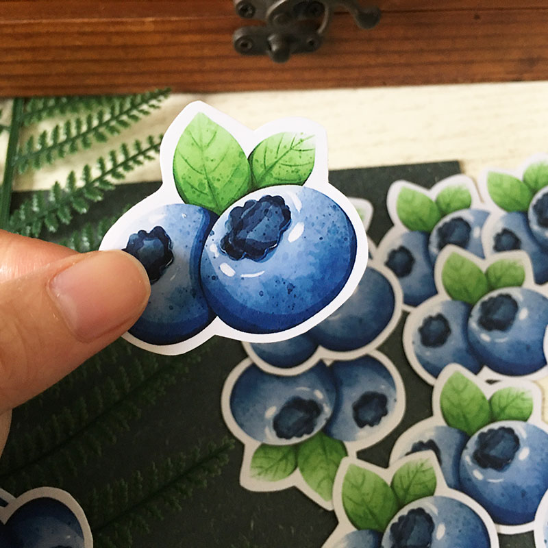 手绘蓝莓小贴纸 春季水果幼儿园手工装饰手帐素材可爱小贴画4-5cm
