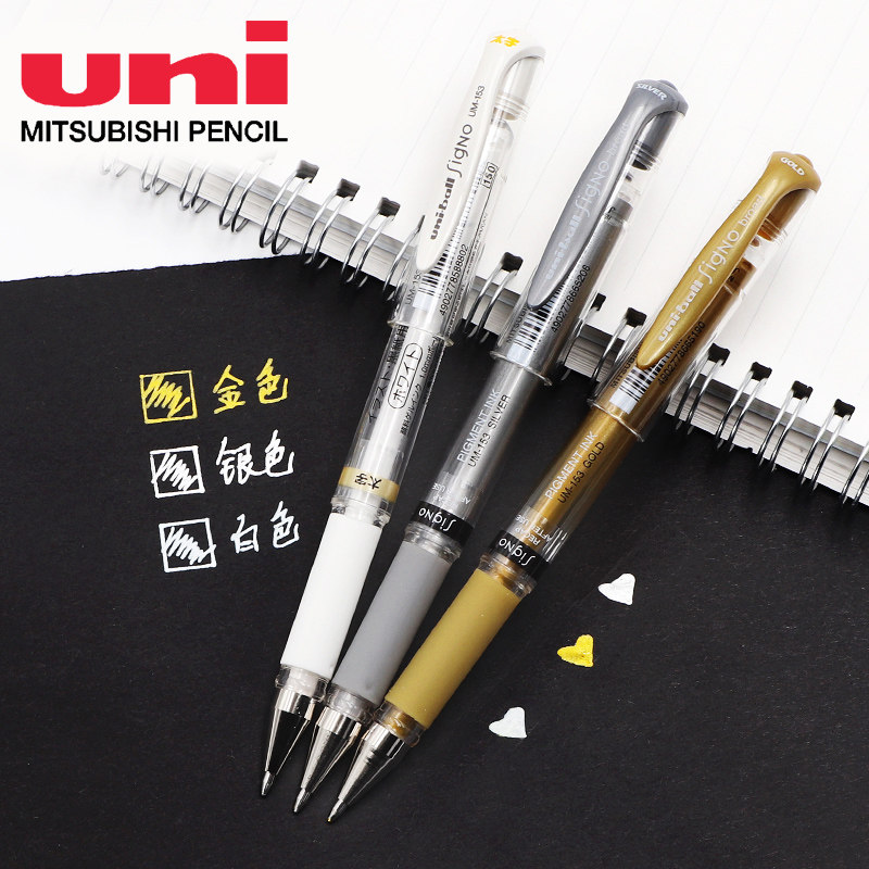 uni三菱高光笔um153高光绘画笔学生手绘油漆笔轮胎笔白色不掉色防水白漆笔金色记号笔婚礼会议签名笔签字笔