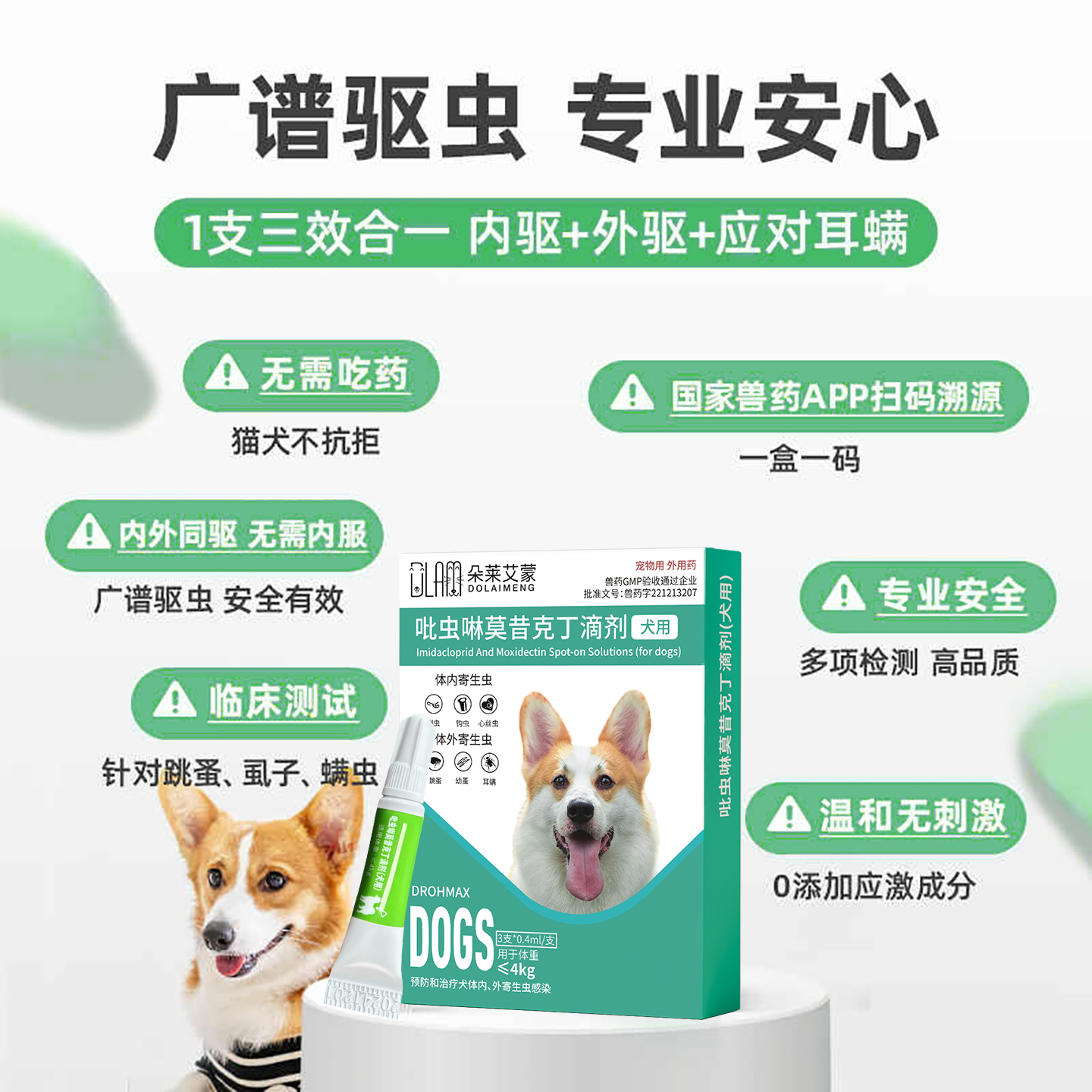 猫咪驱虫药狗狗体内外一体驱虫打虫的除跳蚤外驱吡虫啉莫西克丁剂