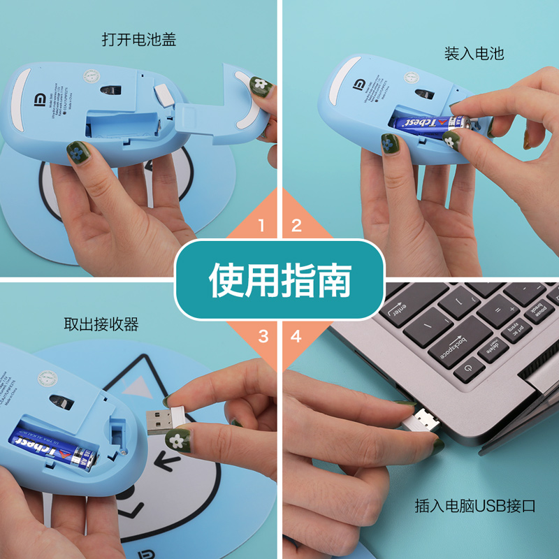 无线鼠标女生可爱静音水转印台式笔记本外接电脑鼠标无线办公家用