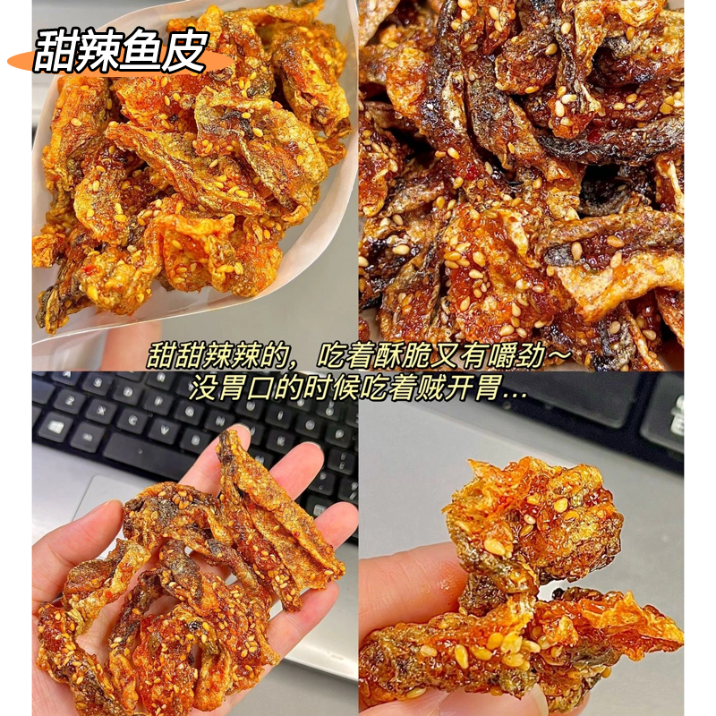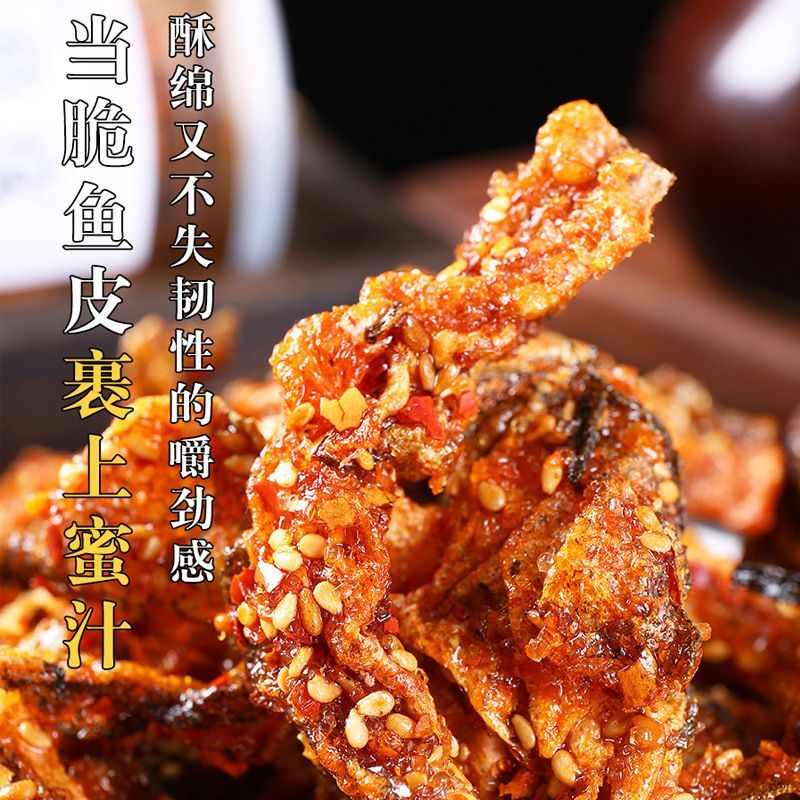 香辣蜜汁鳕鱼皮鱼干鱼丝甜辣即食小吃零食鱼皮办公室解馋香脆