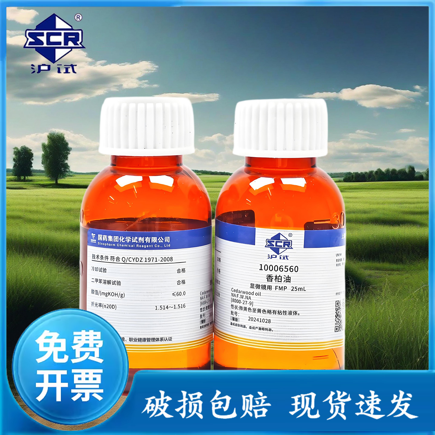 国药试剂 香柏油 FMP沪试25ml 柏木油 雪松油 系蒸馏柏木而得的芳香油