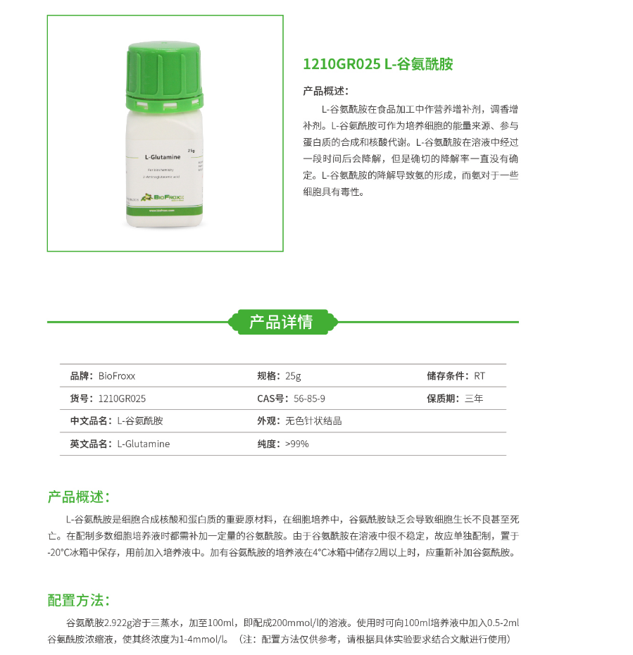 BioFroxx 1210GR025 L-谷氨酰胺L-Glutamine 25g