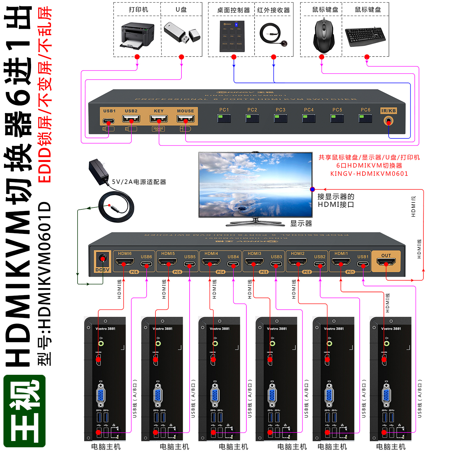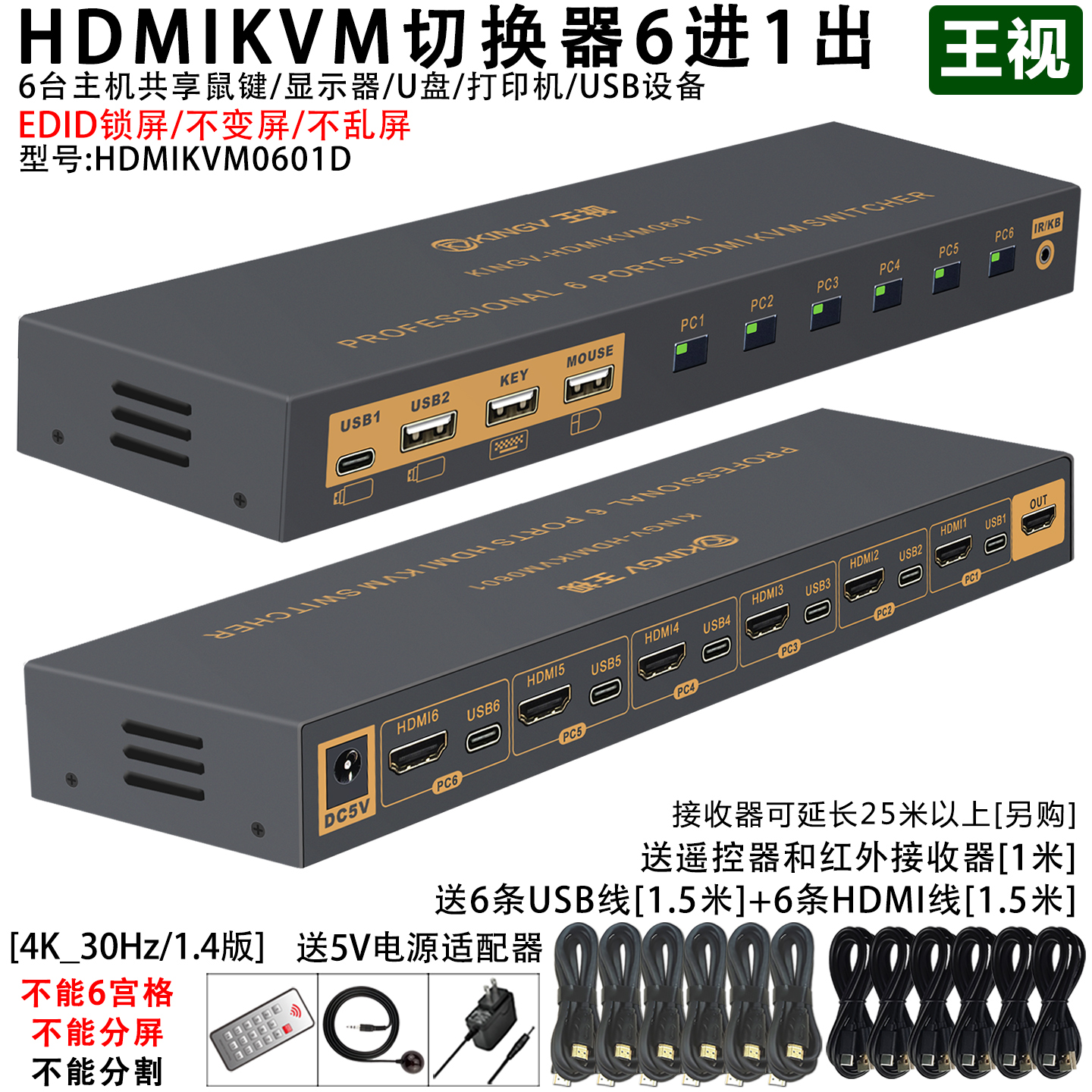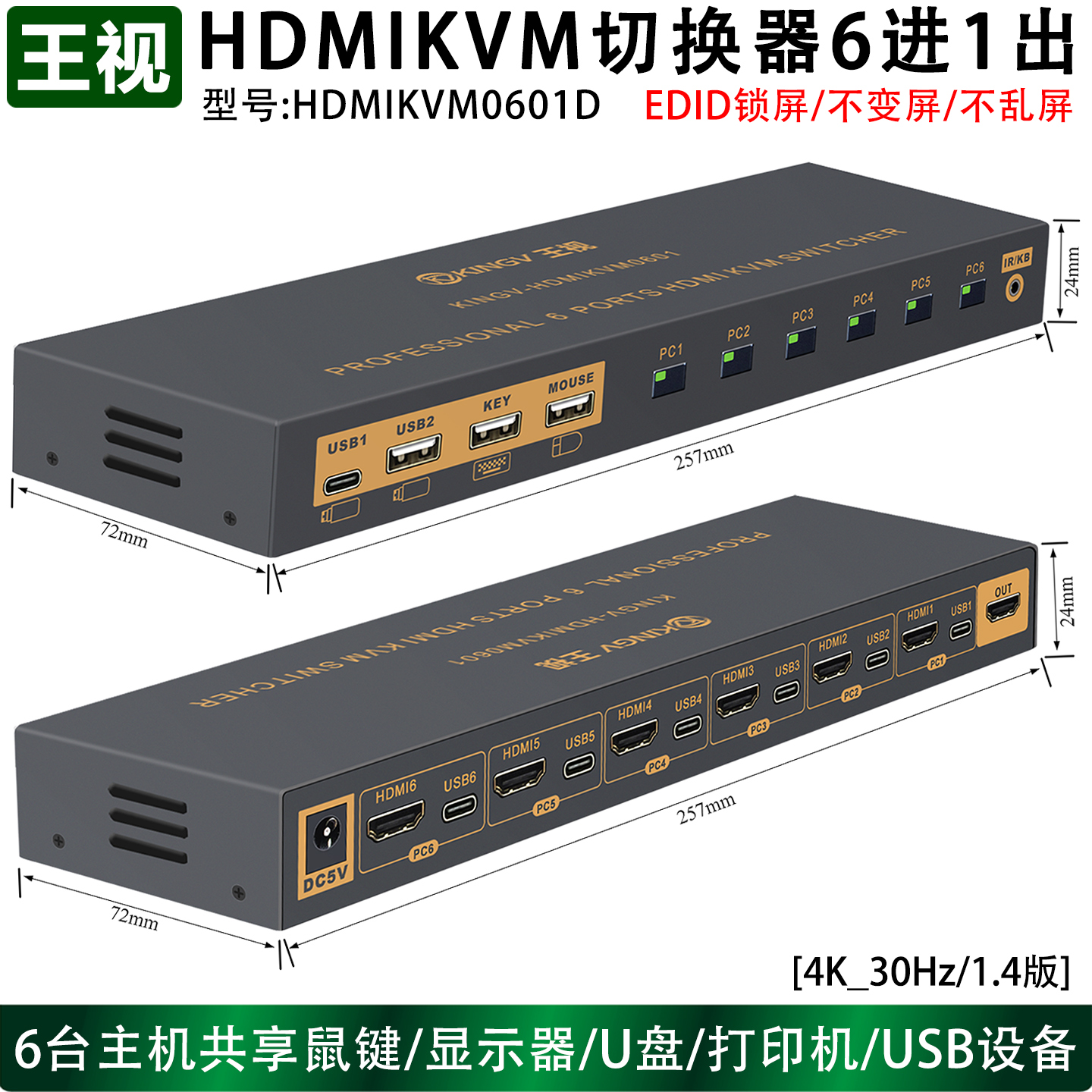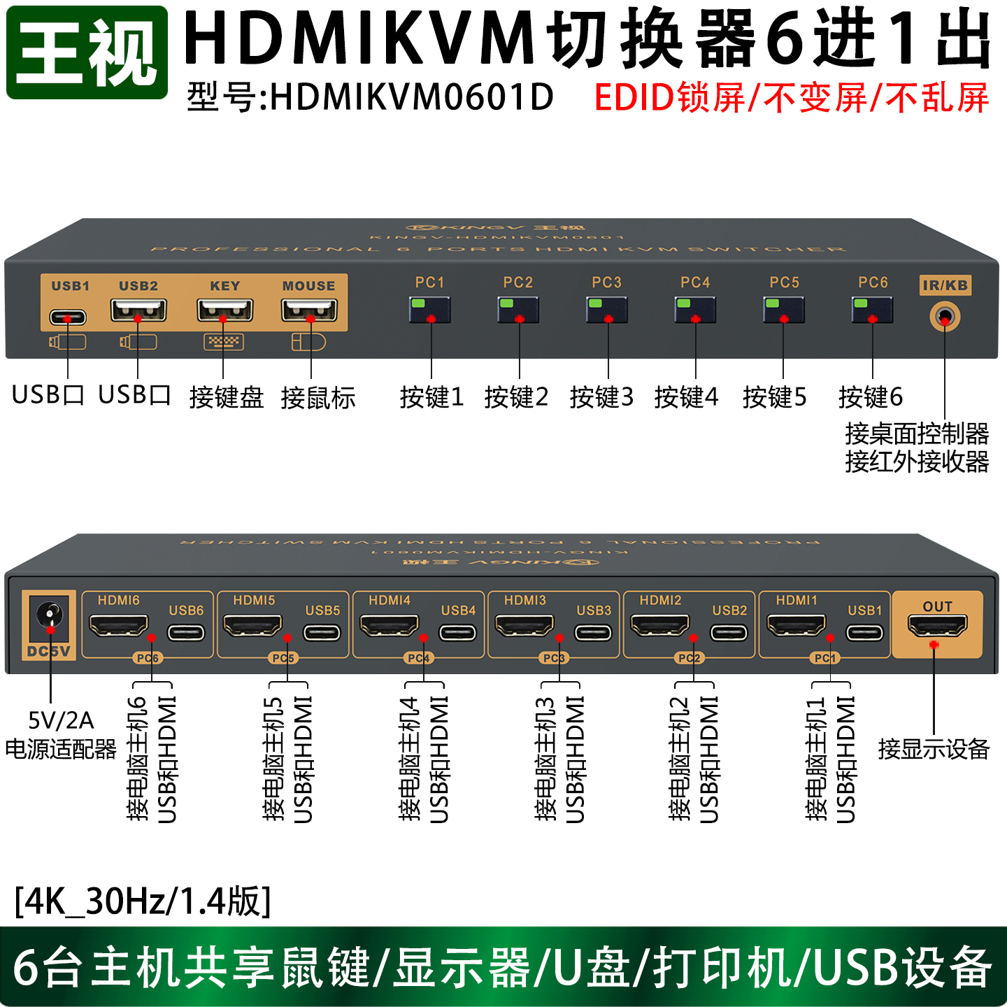 kvm切换器hdmi六进一出五进5进6进1出口多台电脑主机监控录像机共用1套键盘鼠标u盘显示器usb设备4K
