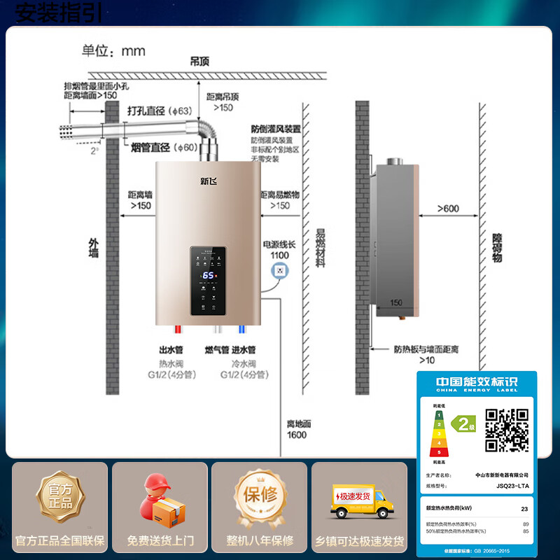 新飞燃气热水器天然气液化气强排式平衡式恒温防冻增压零冷水洗澡