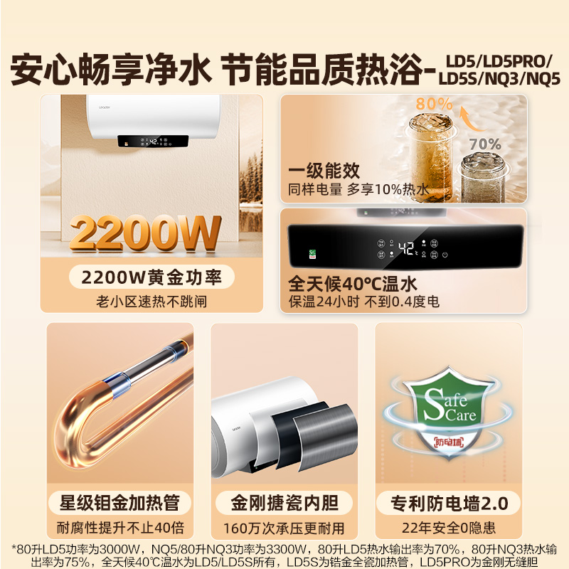 以旧换新海尔统帅电热水器官方家用卫生间节能洗澡速热LD5PRO