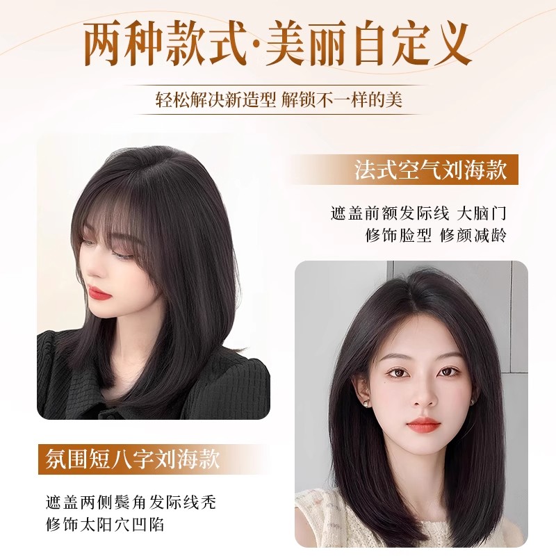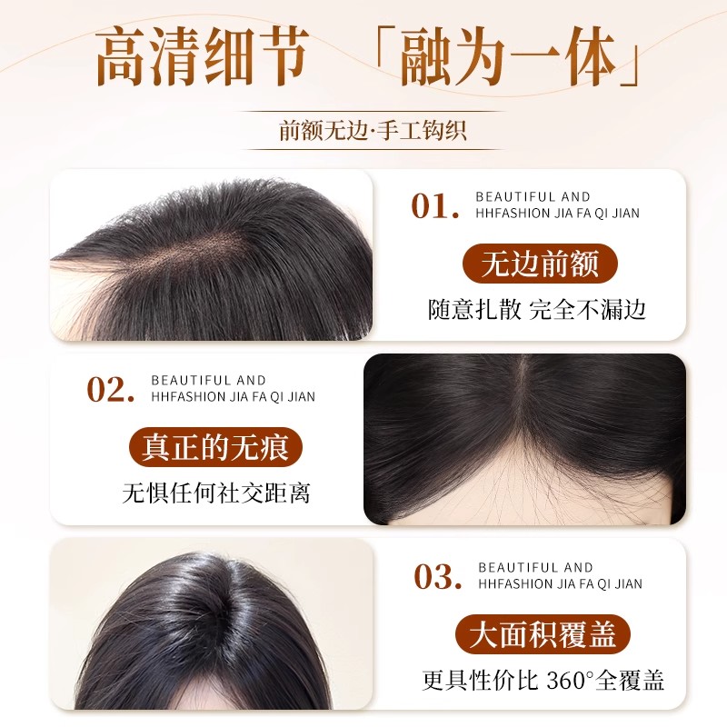 真发假发片女头顶遮白发无痕蓬松增发量无边大面积颅顶补发片前额