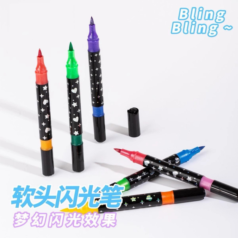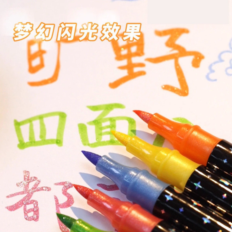 亚马逊双色闪光马克笔 加粗珠光闪粉笔 水彩笔丙烯马克笔