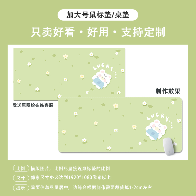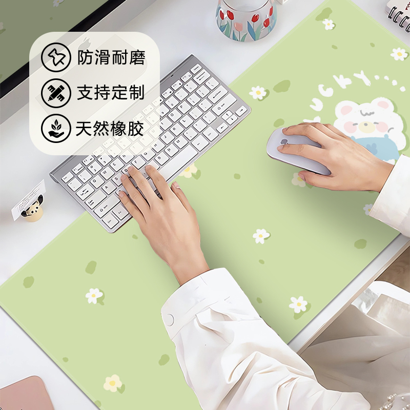 卡通鼠标垫子女生高颜值超大工位电脑桌垫护腕绿色护眼定制键盘垫