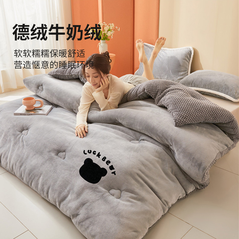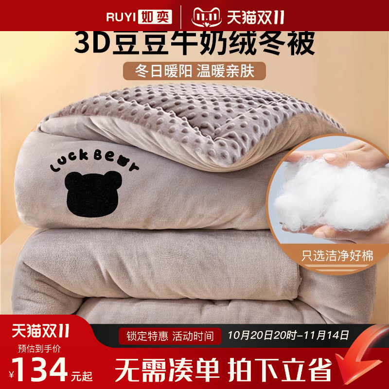 如奕牛奶绒豆豆被子冬被加厚保暖单人学生宿舍加绒棉被春秋被10斤