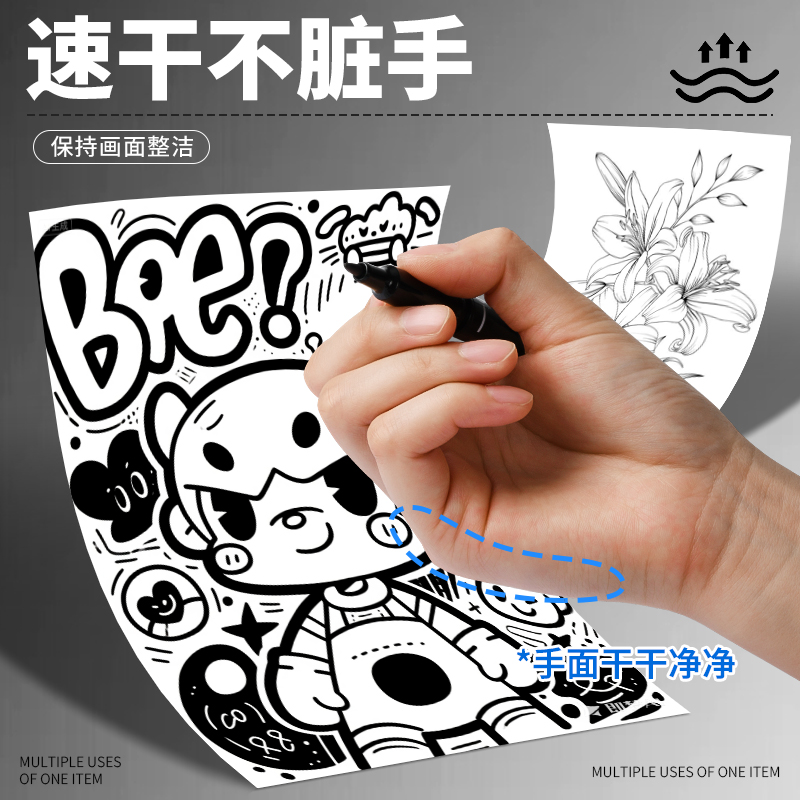 记号笔防水防油不掉色勾线笔美术专用小学生黑色双头笔黑笔油墨笔