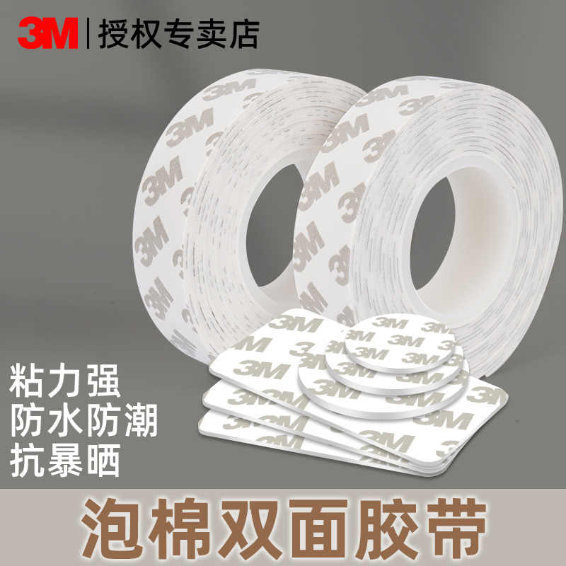 3m双面胶CIP66强力固定墙面不伤墙粘胶无痕免打孔泡棉双面胶高粘度防水耐高温粘排插路由器相框多功能海绵胶
