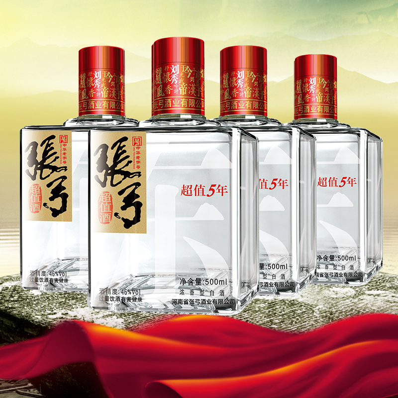 【国货严选】张弓酒超值五年46度*4瓶浓香型固态纯粮食整箱白酒