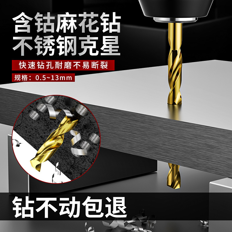 麻花钻头含钴直柄金属打孔钻电钻钻铁转头不锈钢扩孔器钻头钻孔