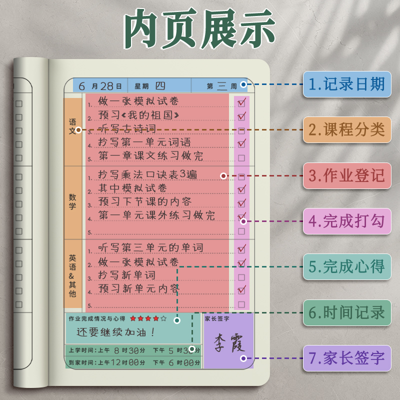 作业登记本小学生专用记作业本牛皮纸一年级二三年级家庭作业课堂摘抄抄作业本记录本笔记本记事本家校联系本