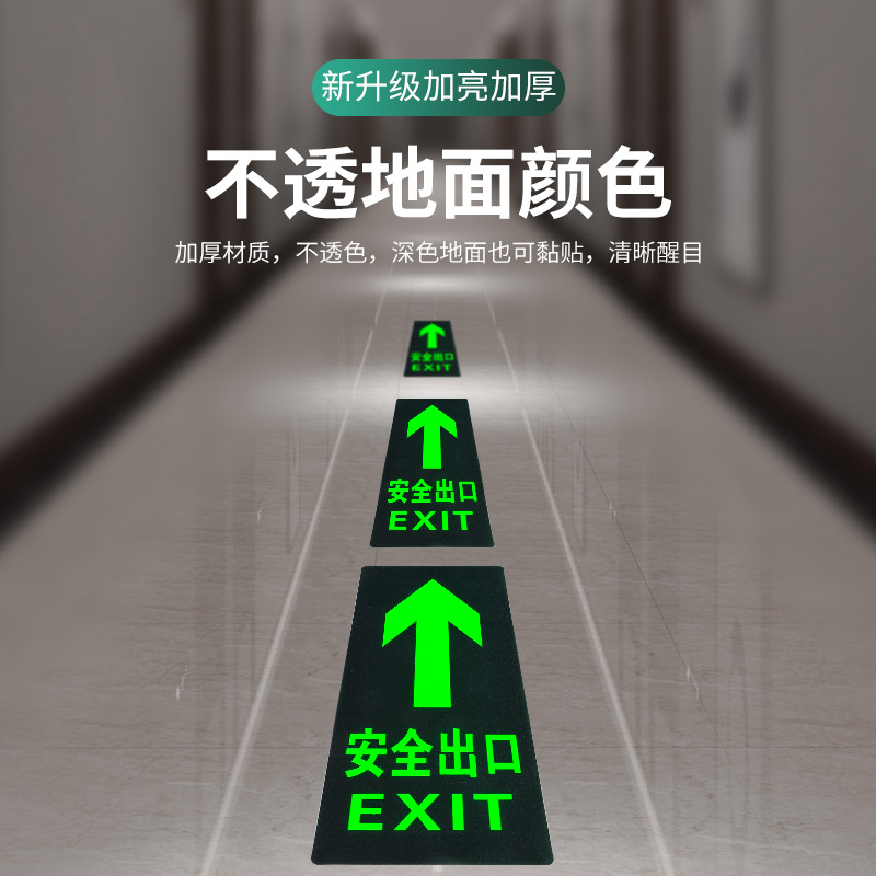 安全出口指示牌地贴箭头夜光消防标识标牌楼梯通道提示墙贴自发光疏散地标贴应急紧急逃生警示标志贴纸标示贴
