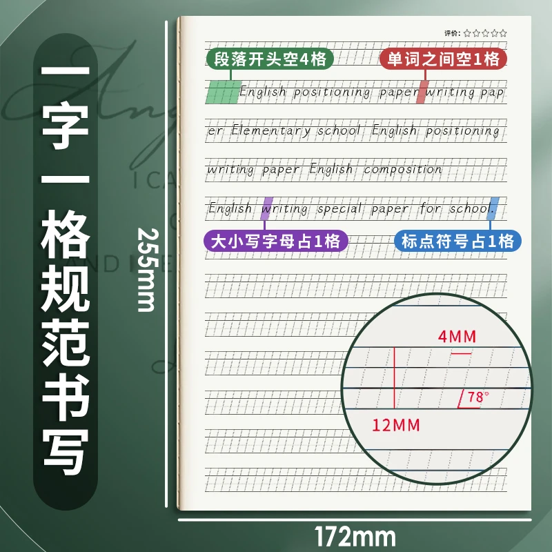 英语定位书写本英语定格初中生专用英文书写小学生初学专用定位本