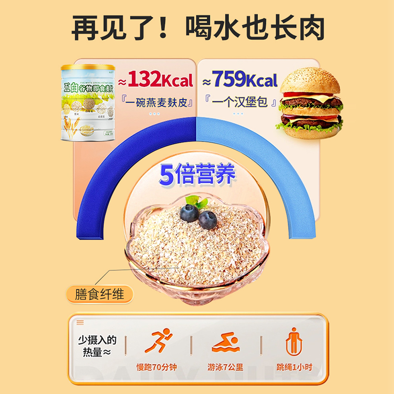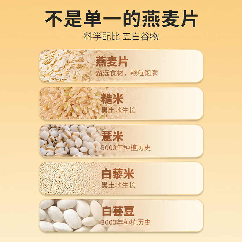 五白谷物即食麦片薏米白青稞白芸豆百控糖原味膳食早餐官方旗舰店