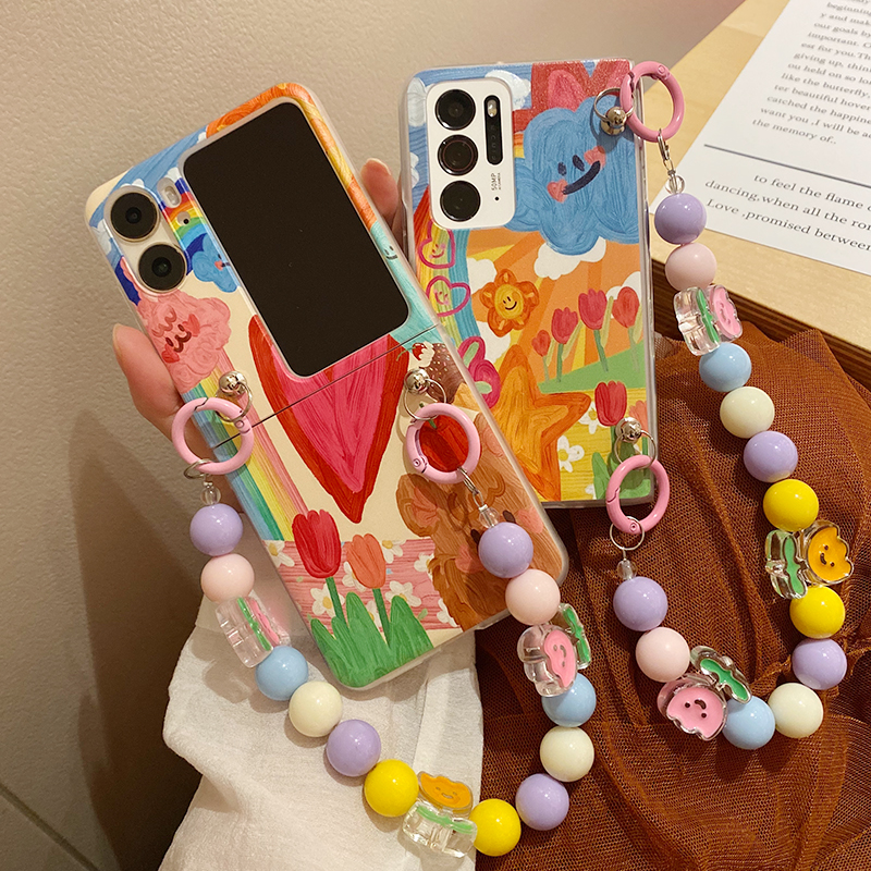 ins日韩卡通可爱小熊适用于OPPOFindN手机壳findn2flip折叠屏findN2郁金香手链oppofind n3flip保护套少女款