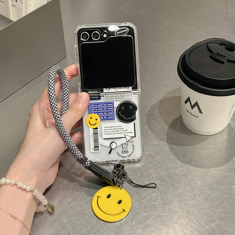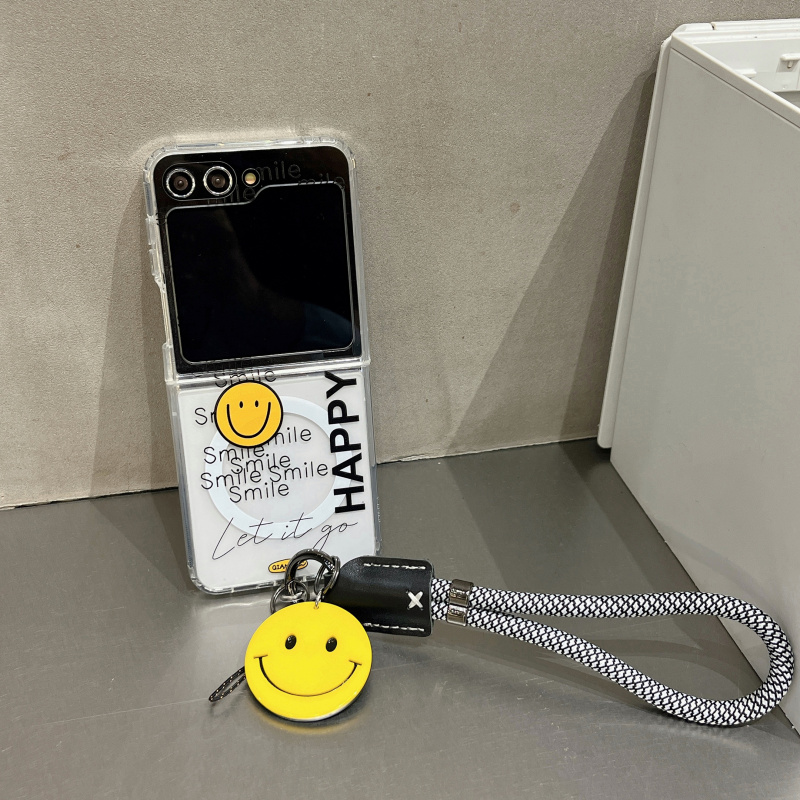ins韩风标签个性微笑脸咪适用于三星Zflip7手机壳zflip6磁吸支架zflip4折叠屏zflip5防摔w23flip手绳保护套