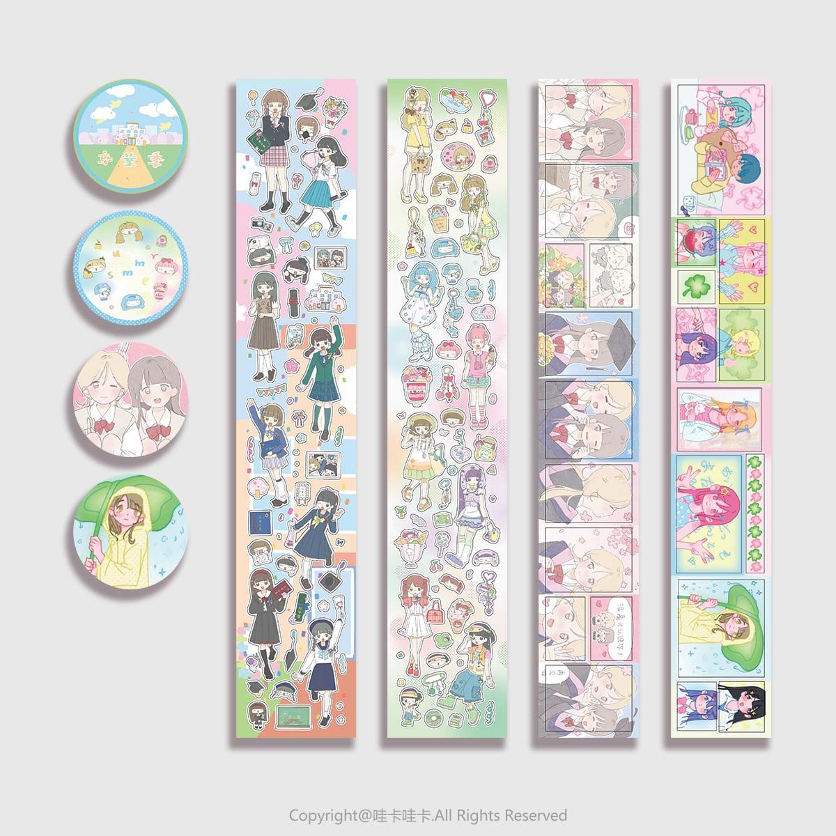 哇卡哇卡Waka贴纸卷分装合集可爱人物贴纸手账素材可爱切膜胶带