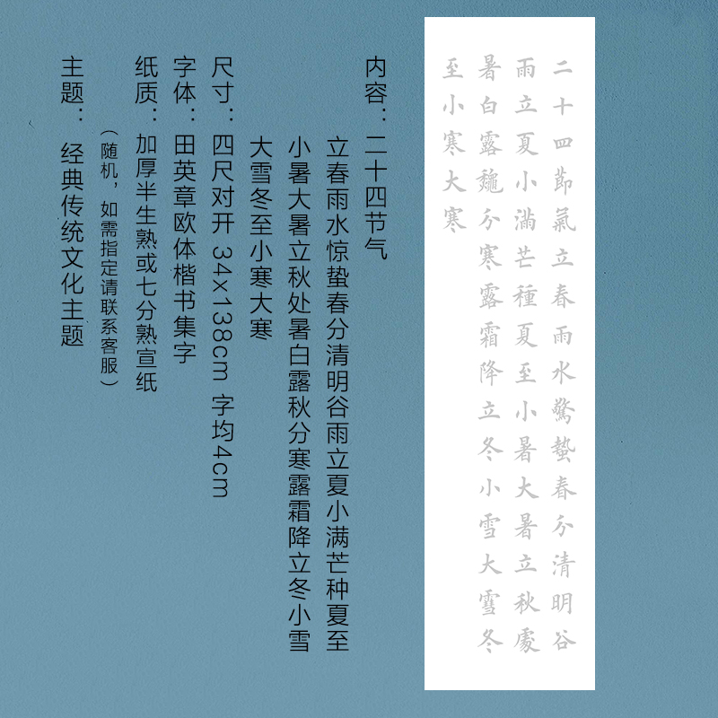 24二十四节气楷书描红宣纸四尺对开竖幅欧体楷书临摹字帖描摹练字