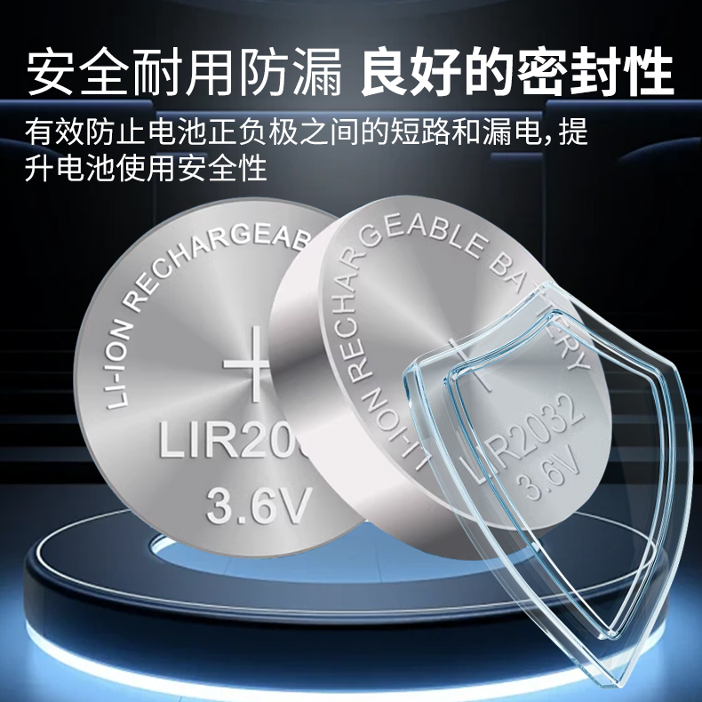 LIR2032充电纽扣电池3.6V锂离子反复使用500次代替CR2032扣式电池