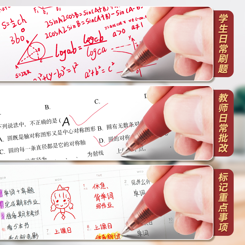 三年二班×点石红笔速干学生用红色中性笔老师专用粗头批改作业高颜值柔绘笔直液式刷题笔圆珠笔勃艮第红水笔