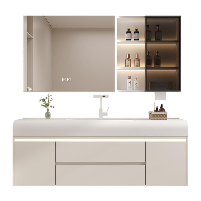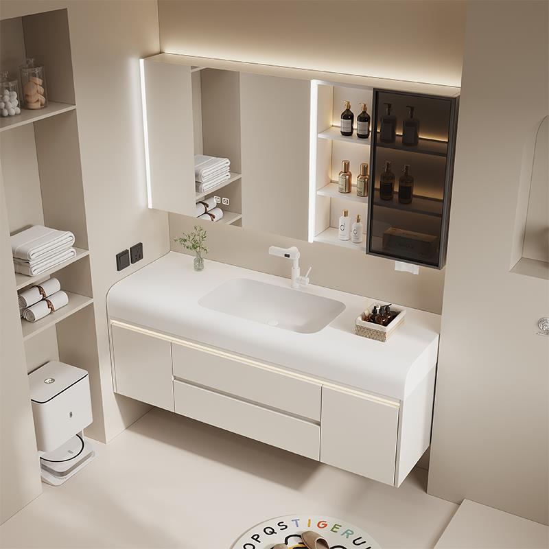 奶油风简约智能实木轻奢肤感一体卫生间浴室柜镜柜组合洗漱台盆饰品