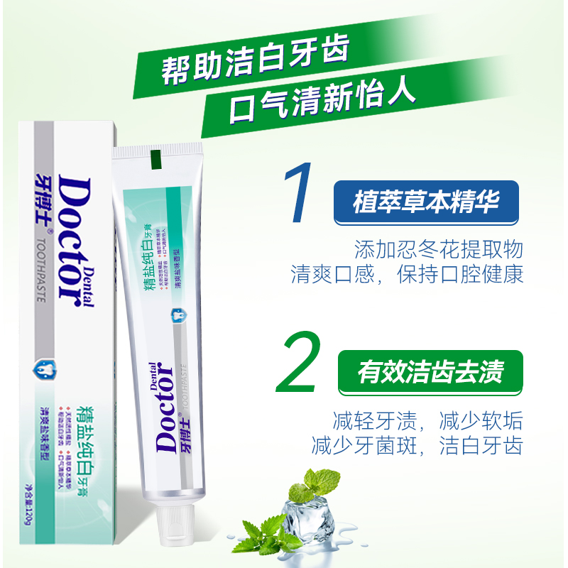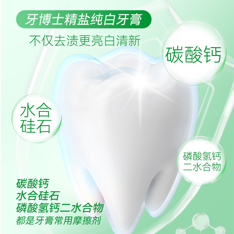牙博士精盐纯白洁白牙膏减少牙菌斑祛黄祛渍去口气护龈官方正品
