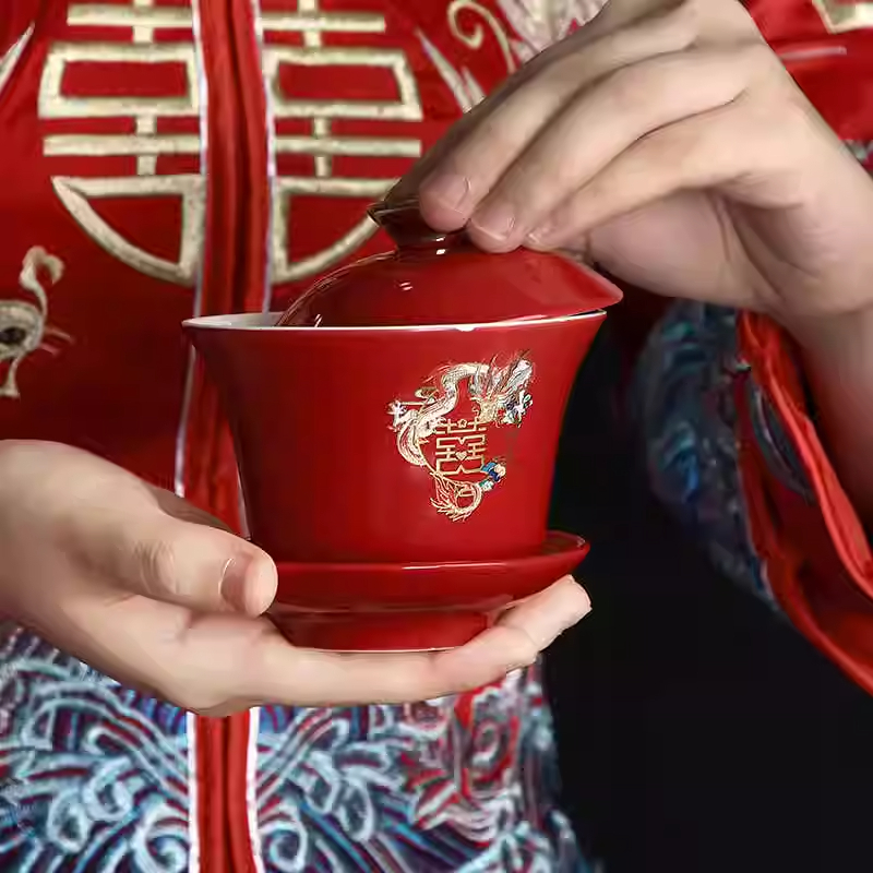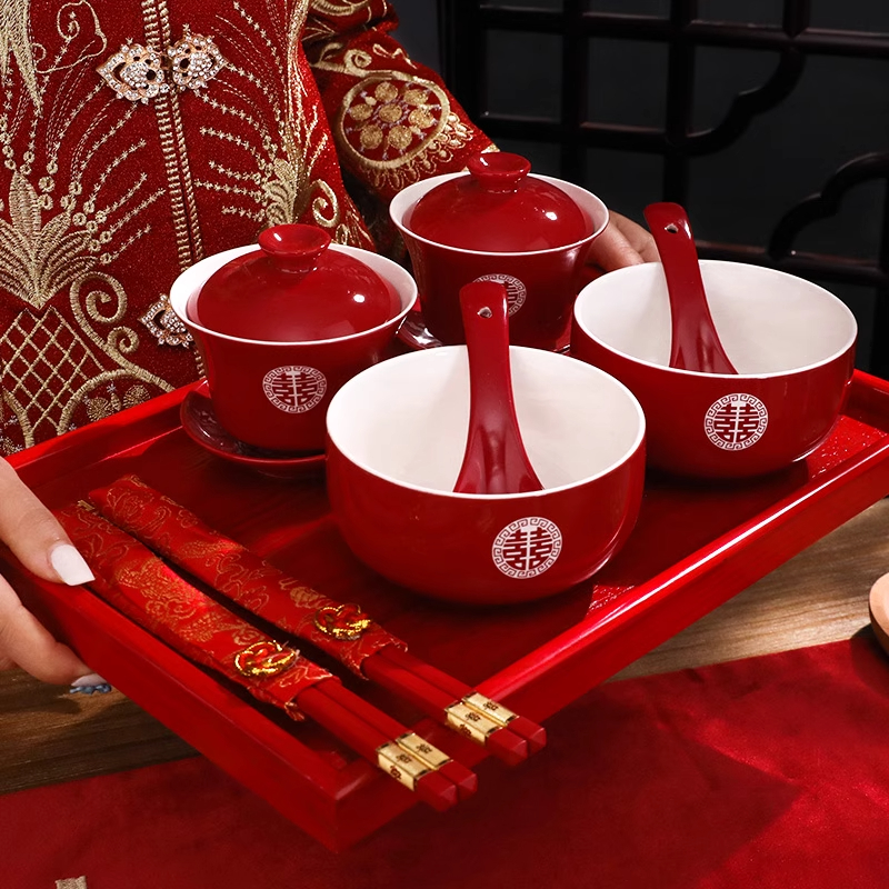敬茶杯喜碗喜杯茶具陪嫁结婚红碗对碗筷套装新人改口杯茶碗新婚
