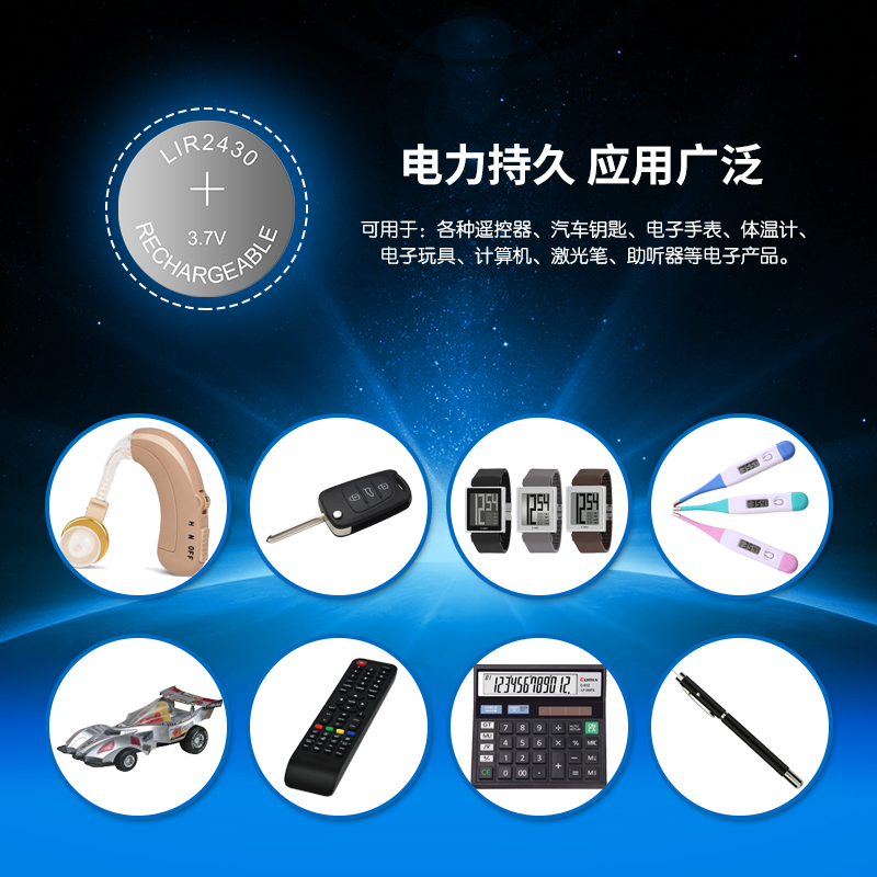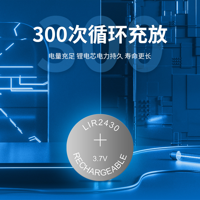 驰特LIR2430 3.7V充电纽扣锂电池适用于汽车钥匙智能遥控PD2430北斗星手表1粒