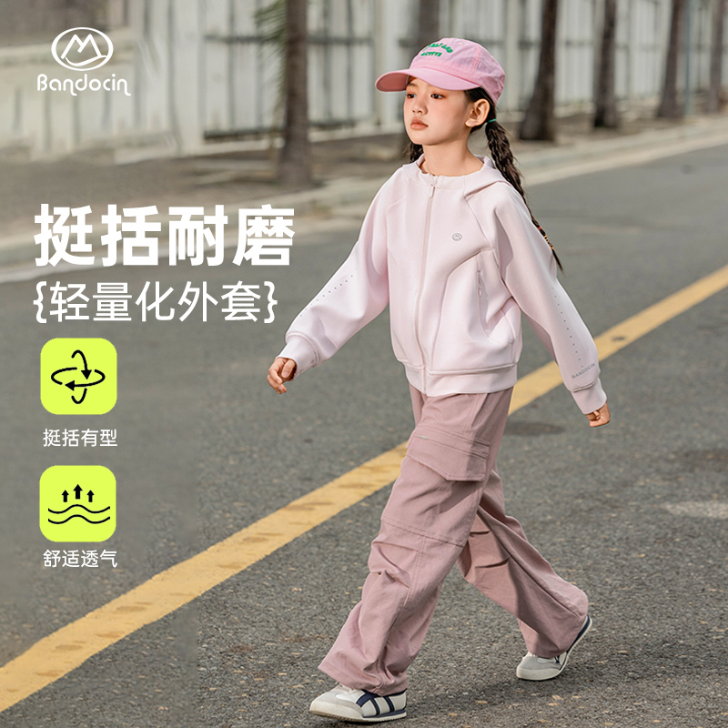 半度闲儿童秋装连帽外套洋气防晒2025新款男女童春秋款运动上衣潮
