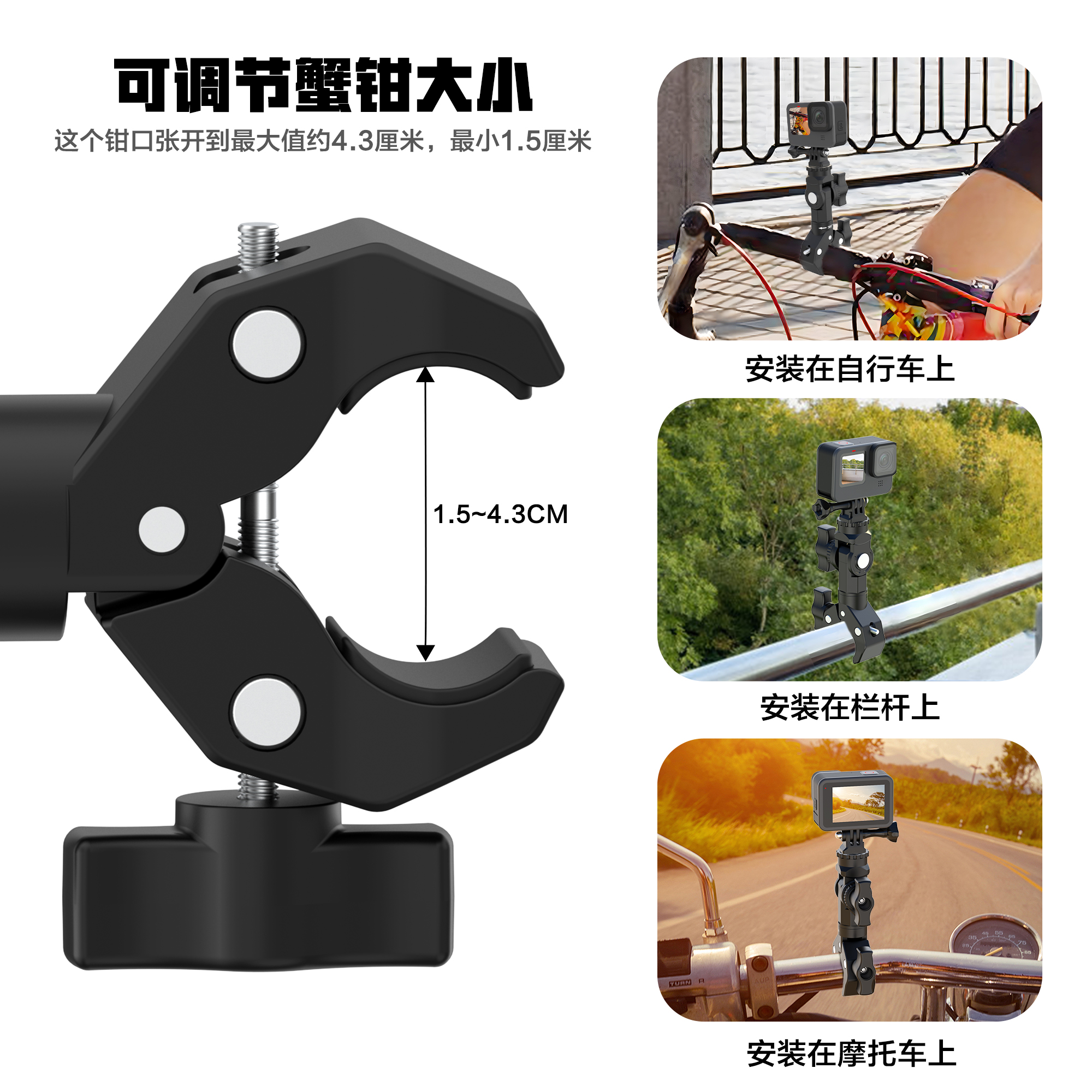 全景运动相机摩托车支架大力夹骑行车把配件影石Insta360 X5/X4/Acepro/gopro /DJI大疆延长自拍杆车把固定