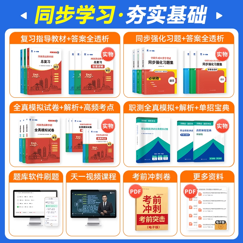 天一2026年河南省高职单招中职生对口升学考试复习资料综合素质职业技能适应技能测试职测专项题语数英考试教材真题高等职业单招面