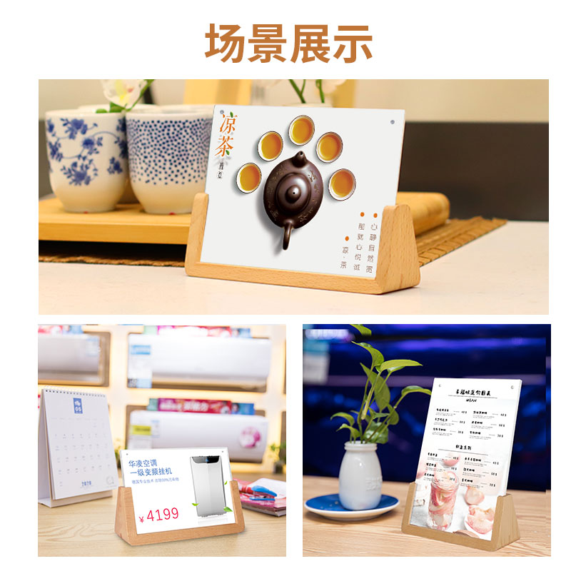 U型榉木桌面展示牌强磁亚克力台卡A4A5菜单价目表木质台签价格牌