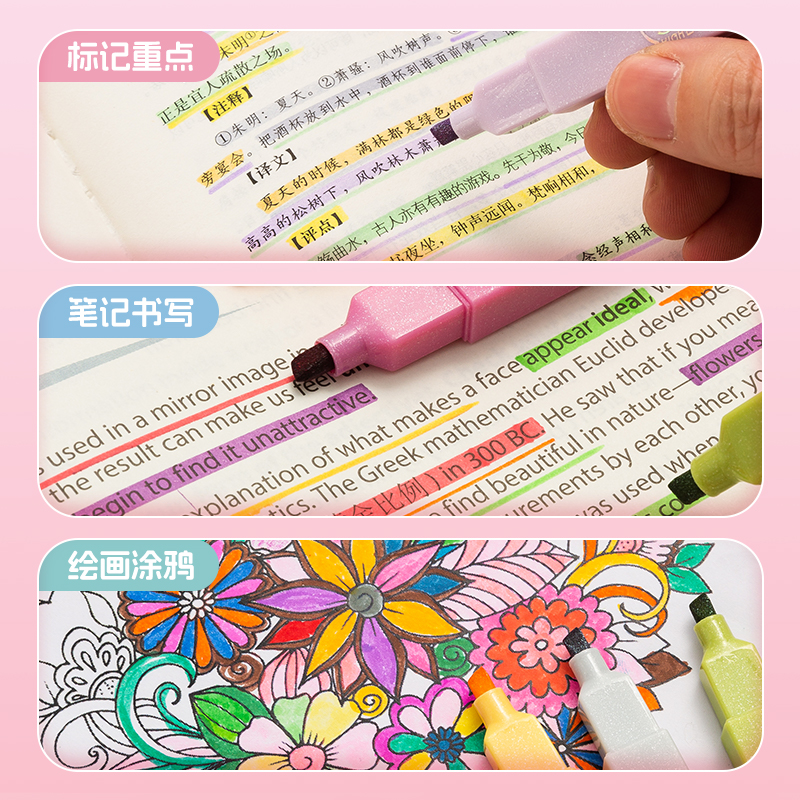 三年二班护眼荧光笔高颜值荧光标记笔学生用多色记号笔彩色划重点手帐手账笔做笔记本马卡龙淡色萤光笔银光笔