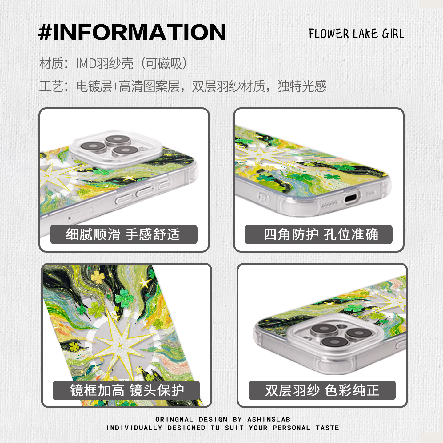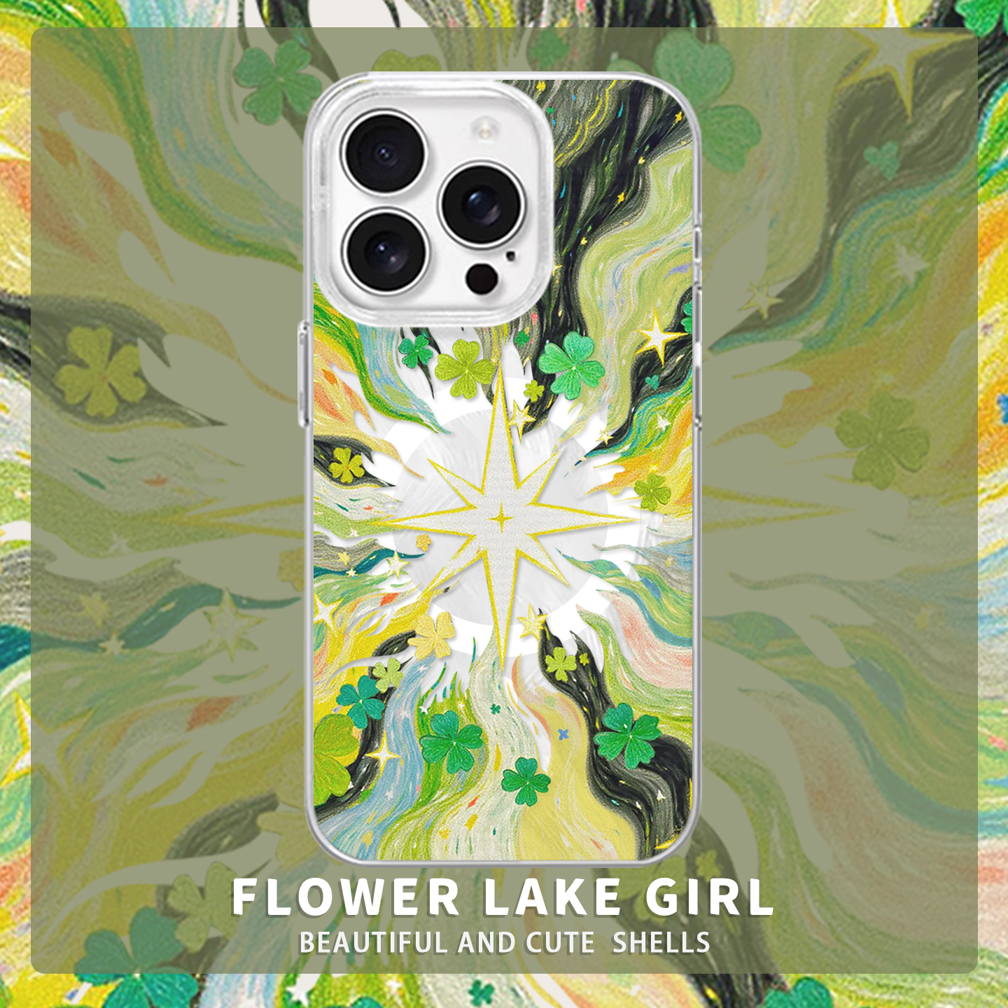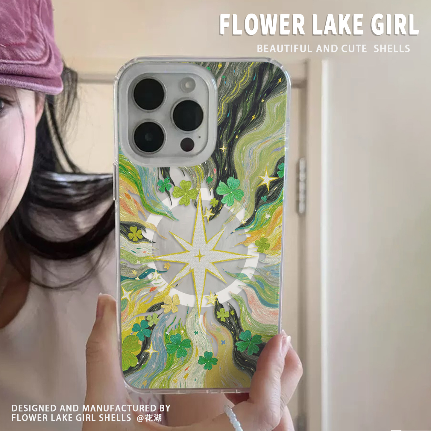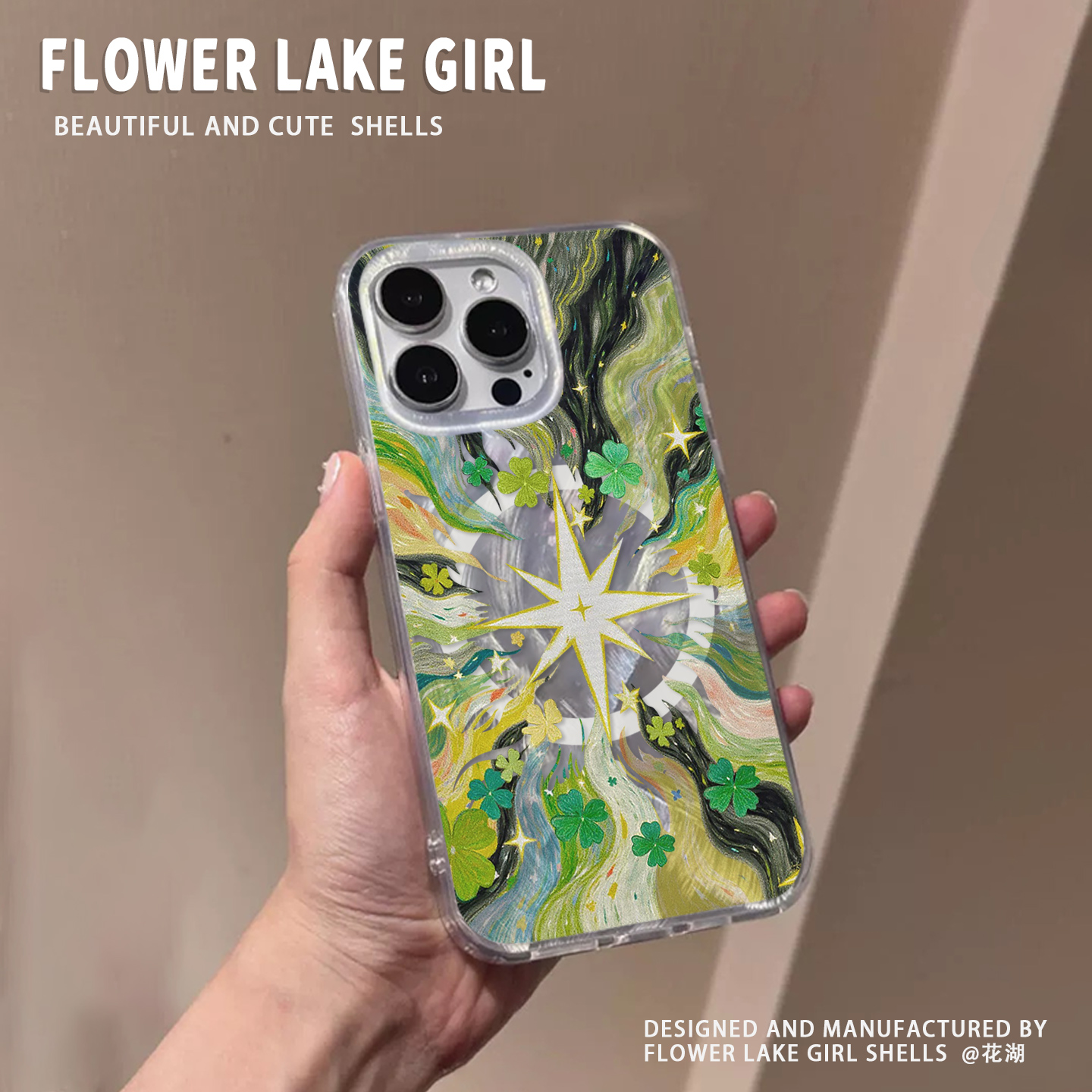 【幸运之源】四叶草涂鸦适用iPhone17/16pro手机壳红米K70磁吸vivoX200华为mete60羽纱一加ACE3小米14苹果13