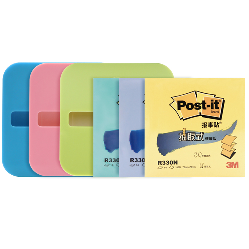美国3M Post-it报事贴抽取式彩色便利贴R330P便签纸便条纸学生办公用N次贴留言记事反复粘贴告示贴魔力座套装