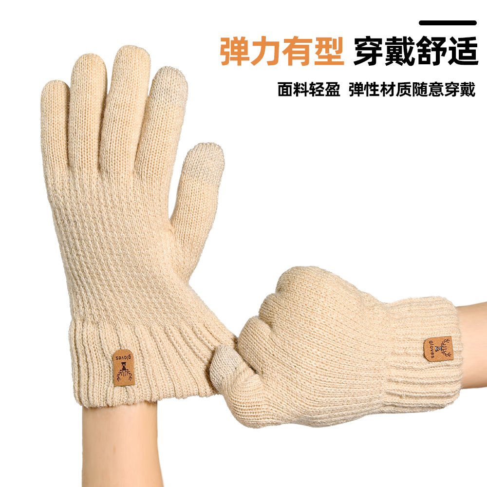 手套男冬季骑行电动车保暖户外防风防寒加绒加厚触屏开车针织毛线