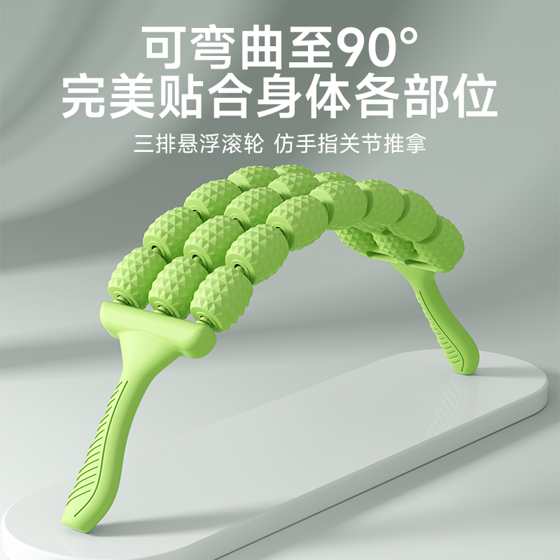 瑜伽狼牙按摩棒舒缓肌肉手持按摩棒四排全方位弯曲颈部腿部按摩器