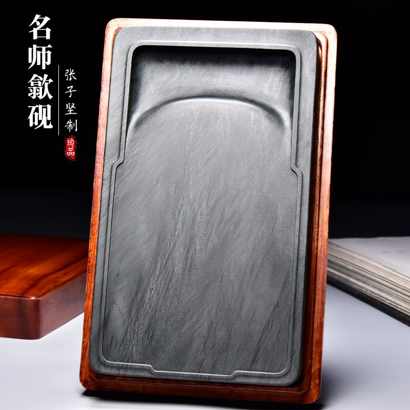 中国四大名砚之首歙砚老坑眉纹藏品行旅图老坑龙尾砚兼端砚收藏