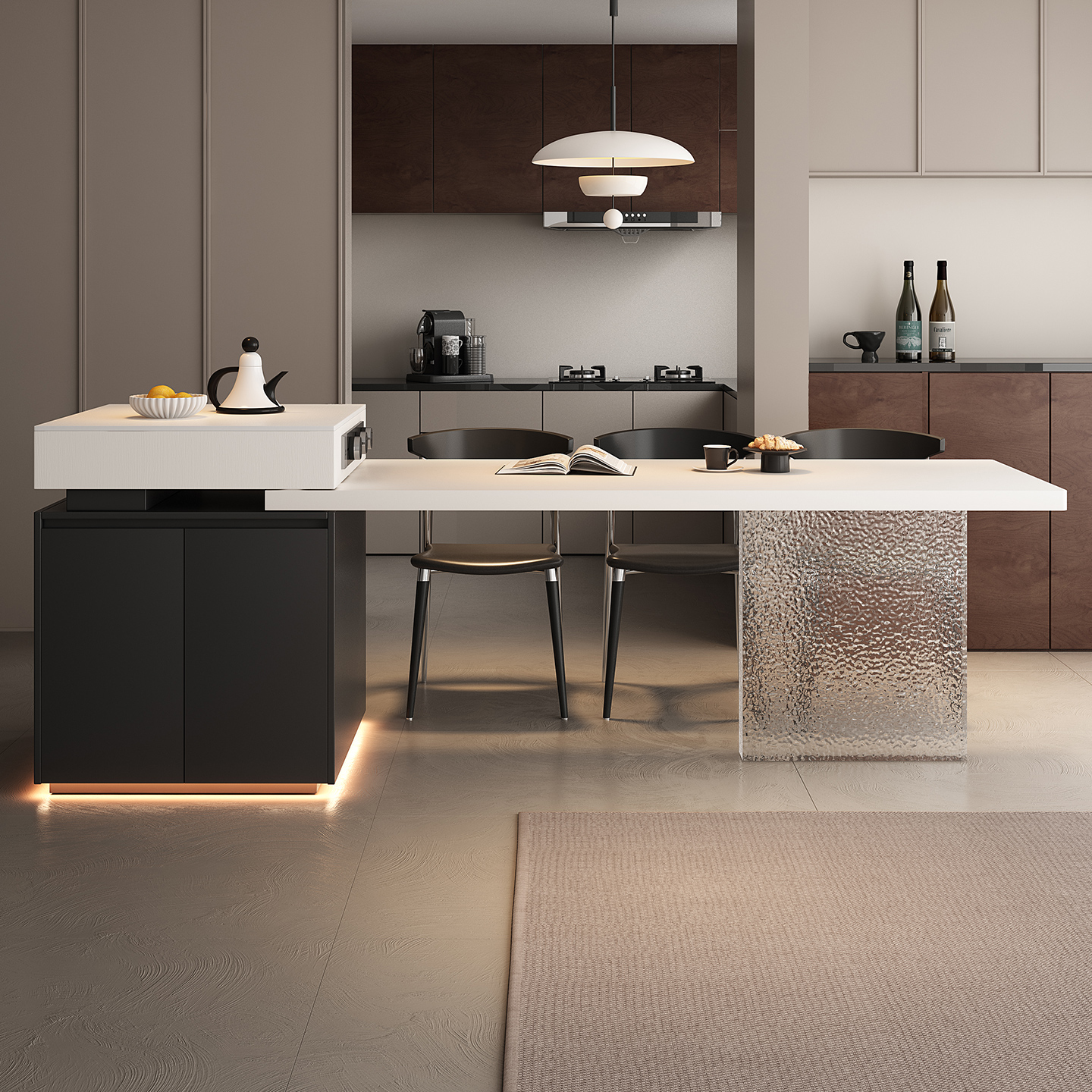 岩板岛台餐桌一体可伸缩导台小户型家用现代极简悬浮中岛台加餐桌