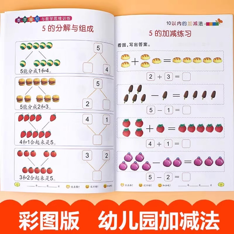 幼小衔接一日一练5102050100以内的加减法看图列式分解与组成幼儿园小中大班数学启蒙练习数字凑十法思维描红训练算式专项能力有声
