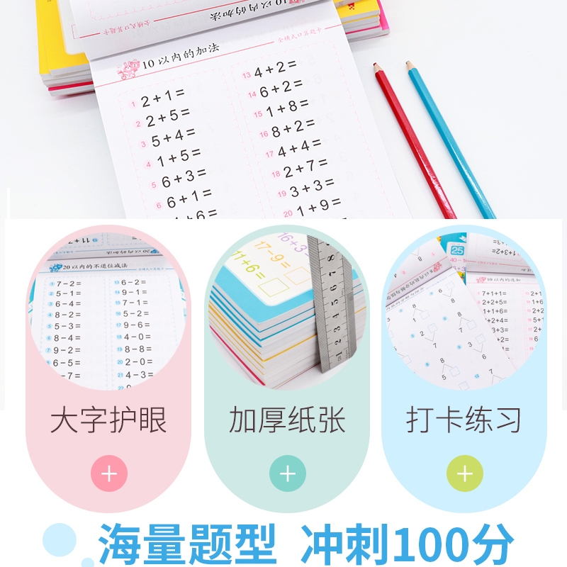 凑十法借十法幼小衔接口算题卡一日一练幼儿园小中大班学前班数学分解与组成102050100以内加减法天天练练习册题专项计算识字横式