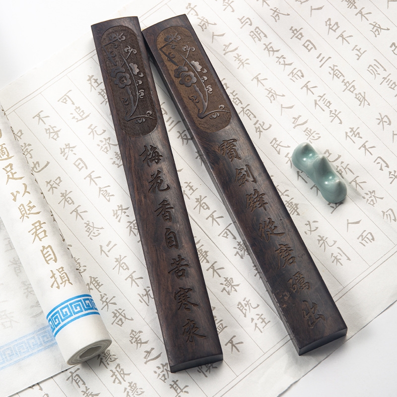 毛笔字镇纸镇尺实木书法镇纸黑梓木镇尺压纸创意中国风加厚一对