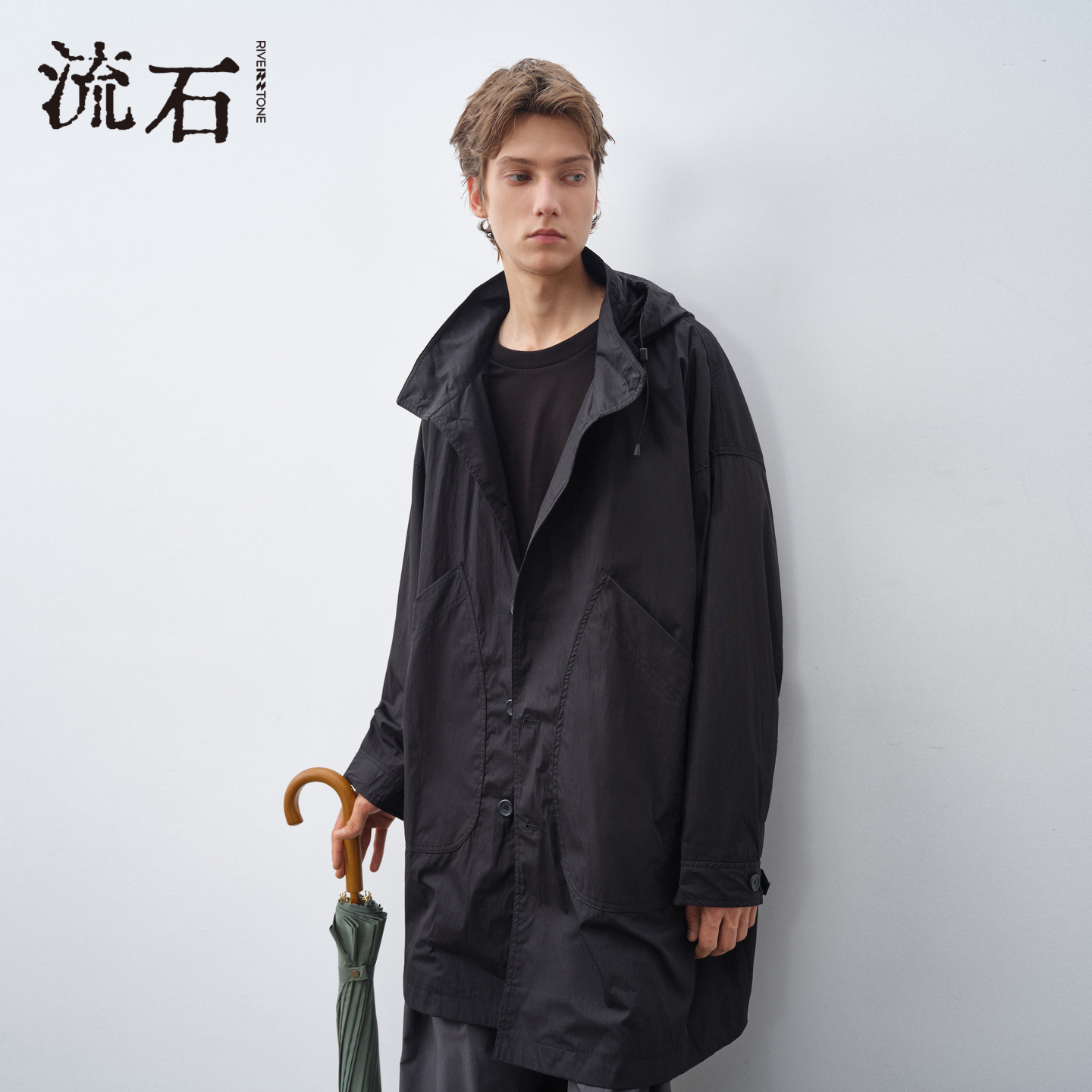 流石男装时尚户外中长款风衣2025年秋季新款男士三防连帽机能外套